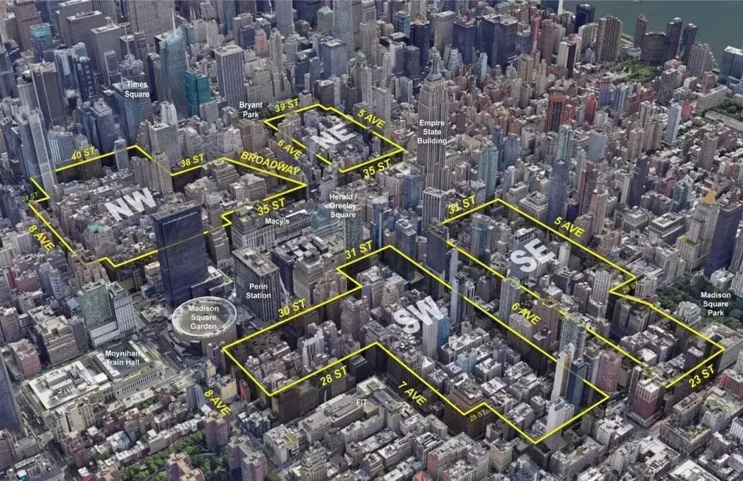 $448M+ in benefits and infrastructure, including $120M dedicated to the fashion/garment ecosystem and $325M to transform Broadway from 21st–42nd Streets into a pedestrian-forward promenade.