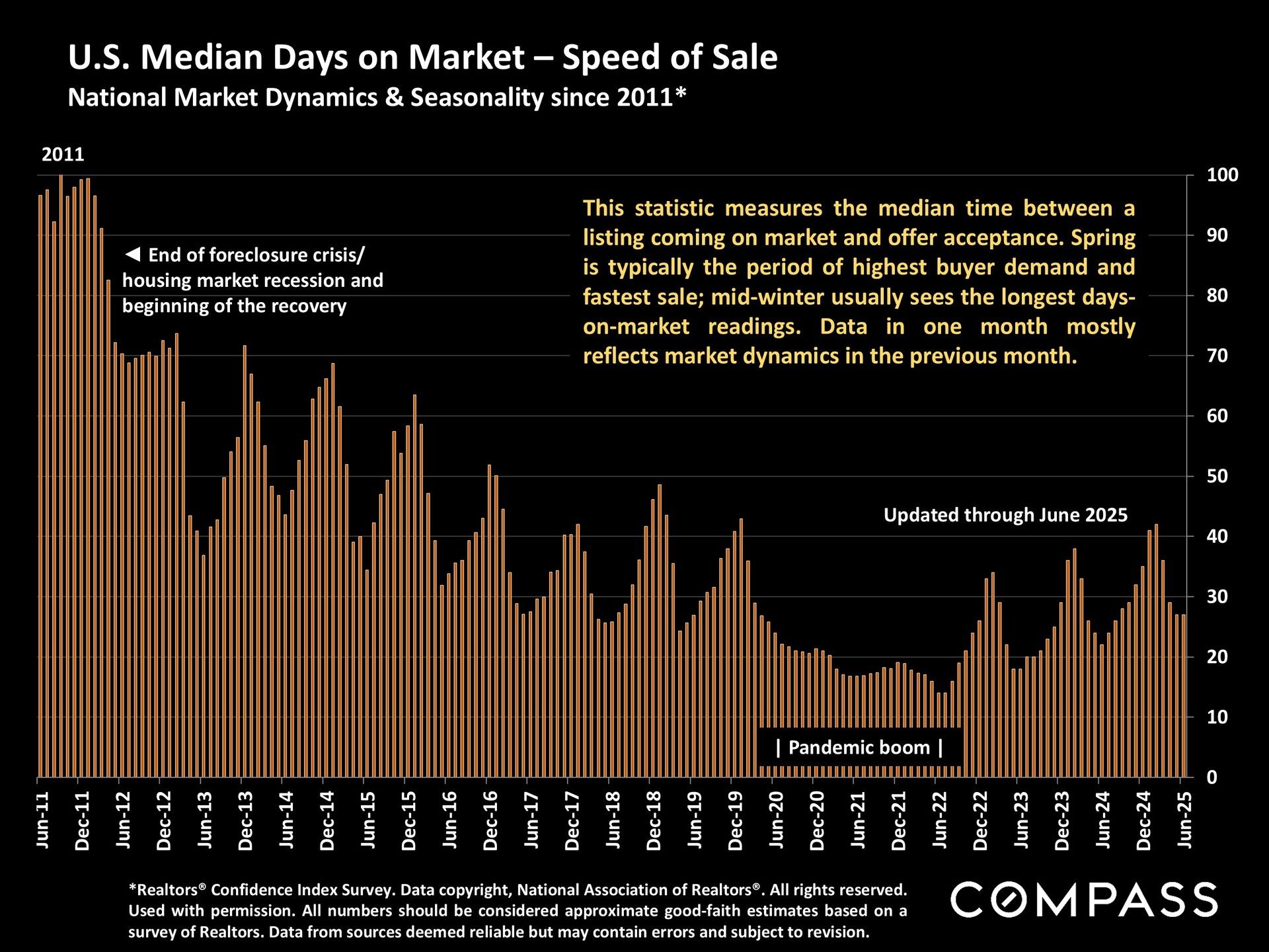 Median time on market to offer: 27 days (slower than 22 days last year).