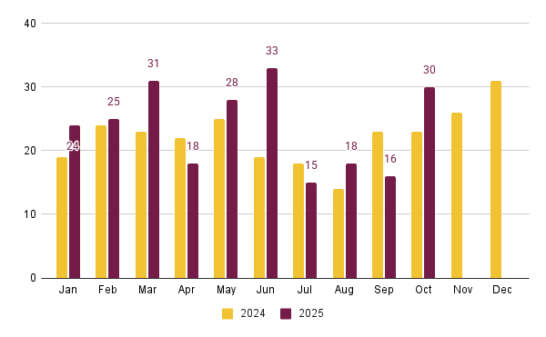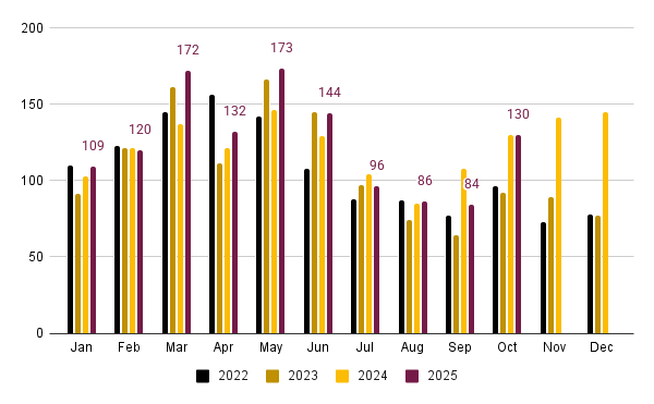 Total average inventory in October: 8,742, nearly 4.5% more than the average inventory of September 2025.