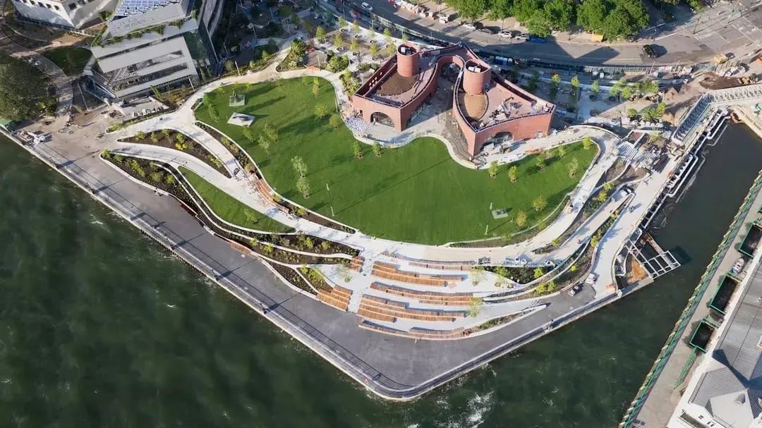 Tucked along the Hudson in Battery Park City, this 3.5-acre green space has been entirely reimagined as part of the $296M South Battery Park City Resiliency Project. While the Pavilion won’t be fully complete until 2026, the newly reopened park already blends architecture, ecology, and climate tech in visionary ways.