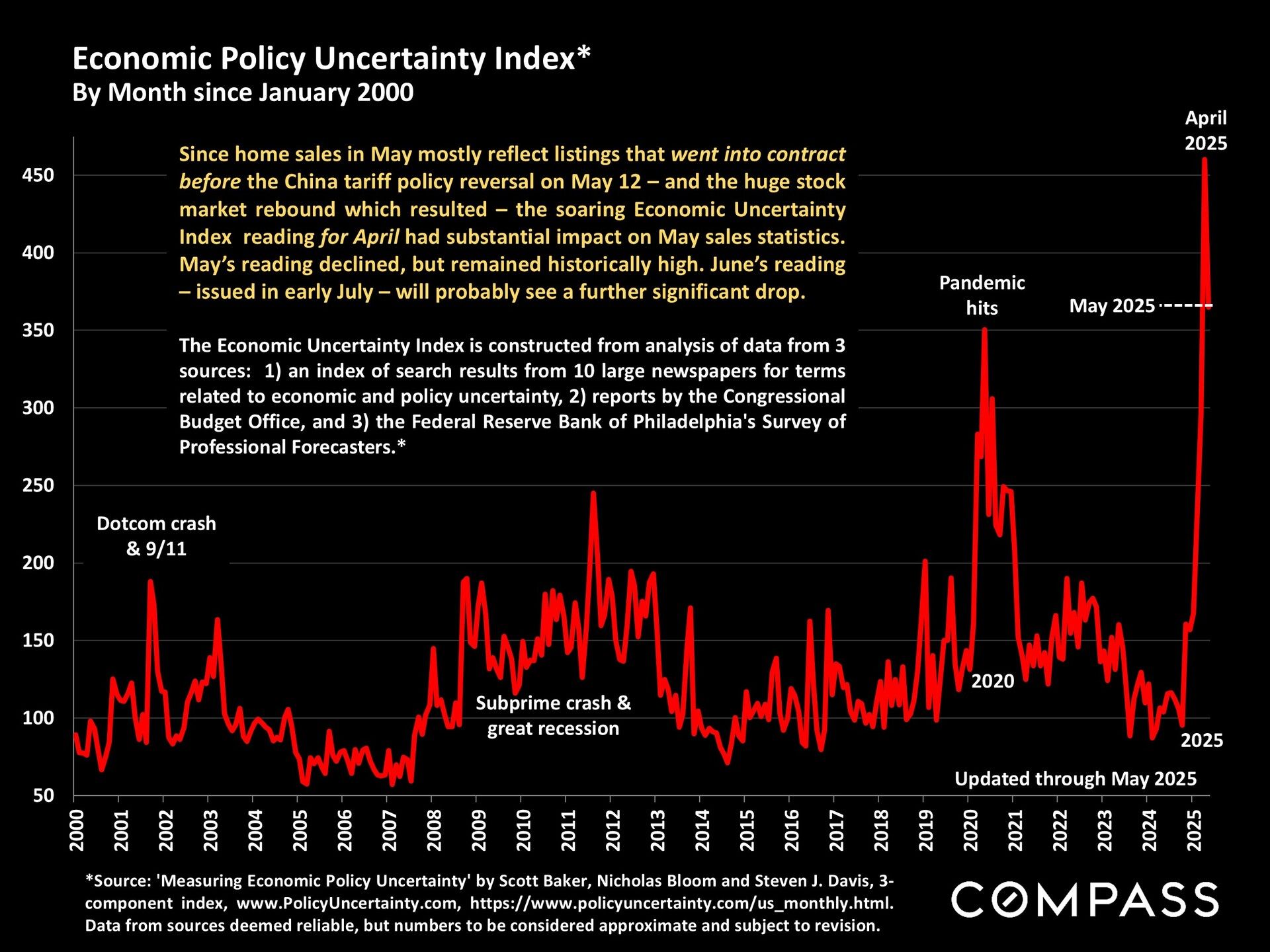 Note that virtually all of May's closed sales-the basis for most of the market data featured in this report-were negotiated before the May 12 reversal of China-tariff policies, which triggered an enormous recovery in the stock market, and significant rebound in consumer confidence (but which still remained very low by historical standards). The latest inflation reading remained subdued, but concerns continue regarding the possible impact of tariffs. Interest rates have been stable for the past 2 months, but in the absence of a meaningful decline did not provide the hoped for boost to buyer demand. The Fed once again left their benchmark rate unchanged.
