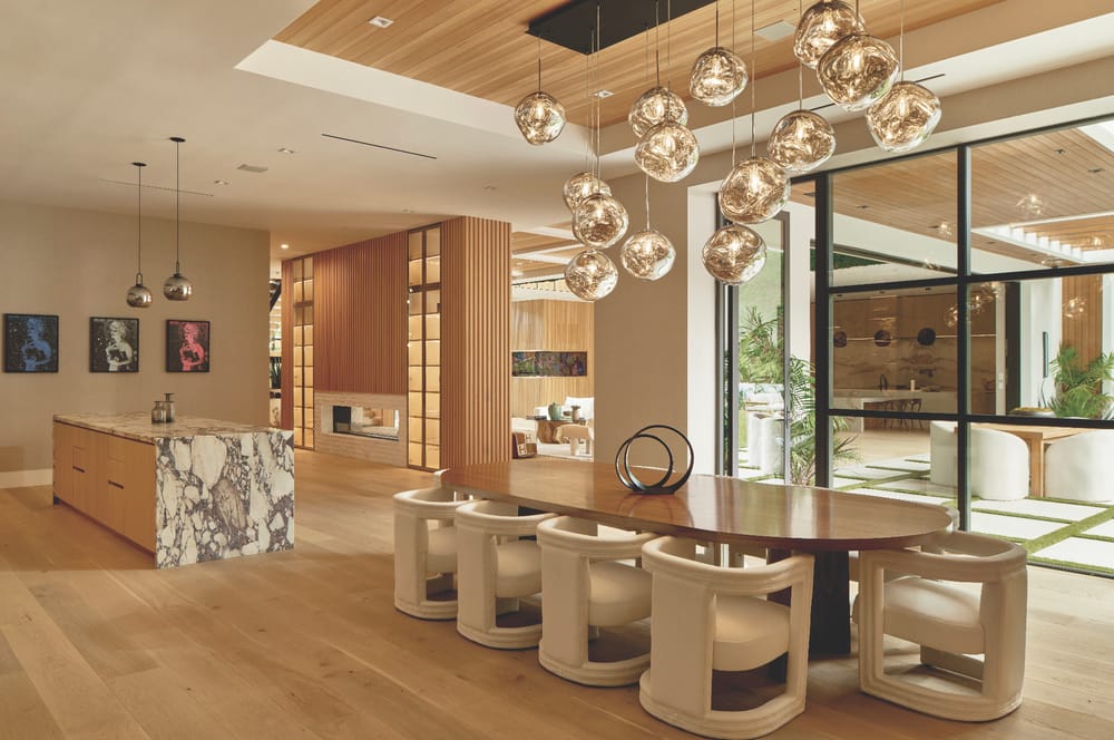 Dallas, TX: a masterwork of architecture, integrity + serenity. Tucked in the exclusive Creeks of Preston Hollow, this residence rests on a private lot where 2 creeks wind through lush, tree-lined banks. A resort-style backyard, inspired by Palm Springs, features a tranquil pool, turfed lawn + elegant lighting — a landscape of privacy + peace.